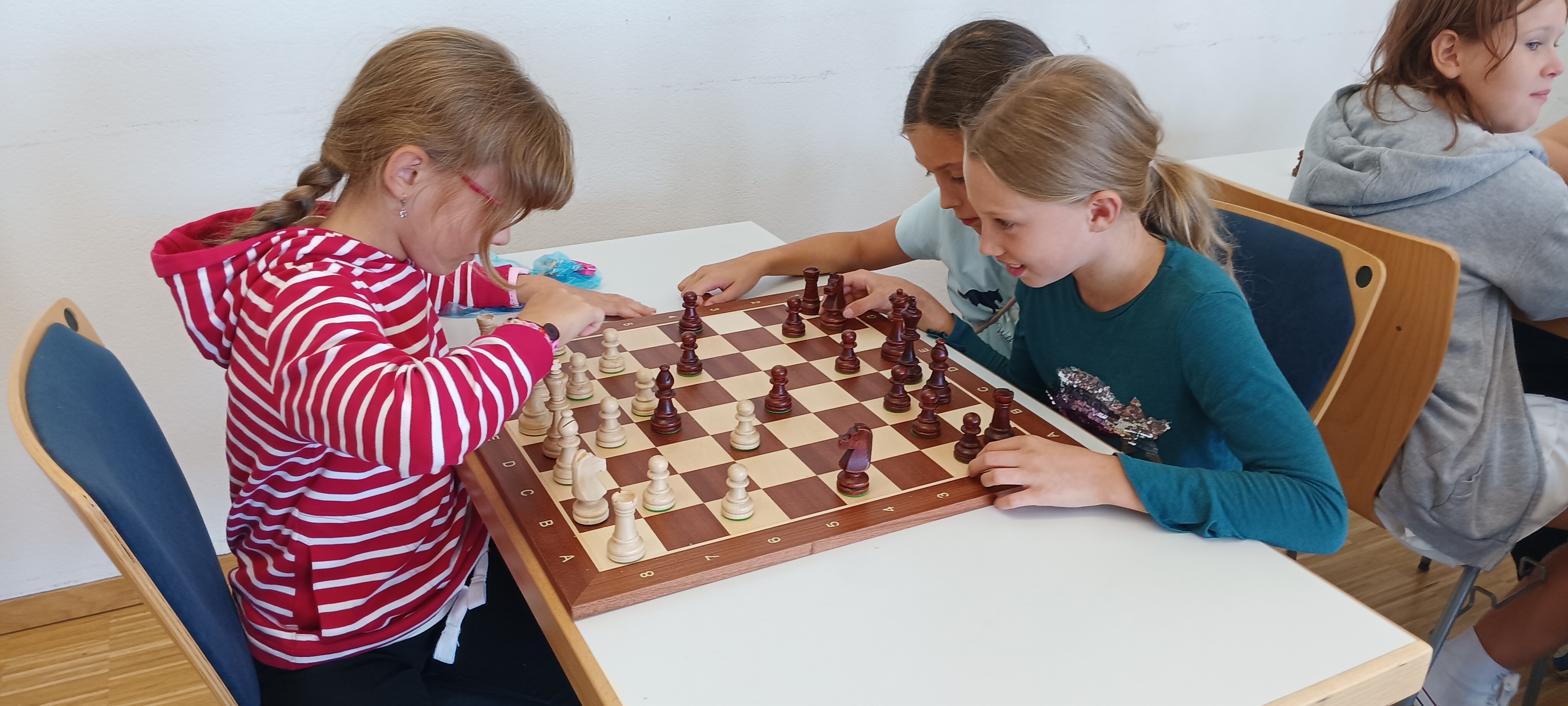 Zehn Teilnehmer wollten die Gelegenheit nutzen, um einmal ein kleines Schachturnier zu spielen. In neun Runden musste dabei jeder einmal gegen jeden antreten. Damit das Ganze auch in einem sinnvollen Zeitrahmen über die Bühne gehen konnte, kamen Schachuhren zum Einsatz. Dies stellte überhaupt kein Hindernis dar, denn entweder kannten sich die Kinder bereits damit aus oder sie fanden sich problemlos in das Spiel mit begrenzter Bedenkzeit ein. Am Ende gab es mit Timo Hauser einen eindeutigen und verdienten Sieger, denn er gewann einfach alle Partien. Den zweiten Platz teilten sich Nikita Landmann und Marvin Weigert.